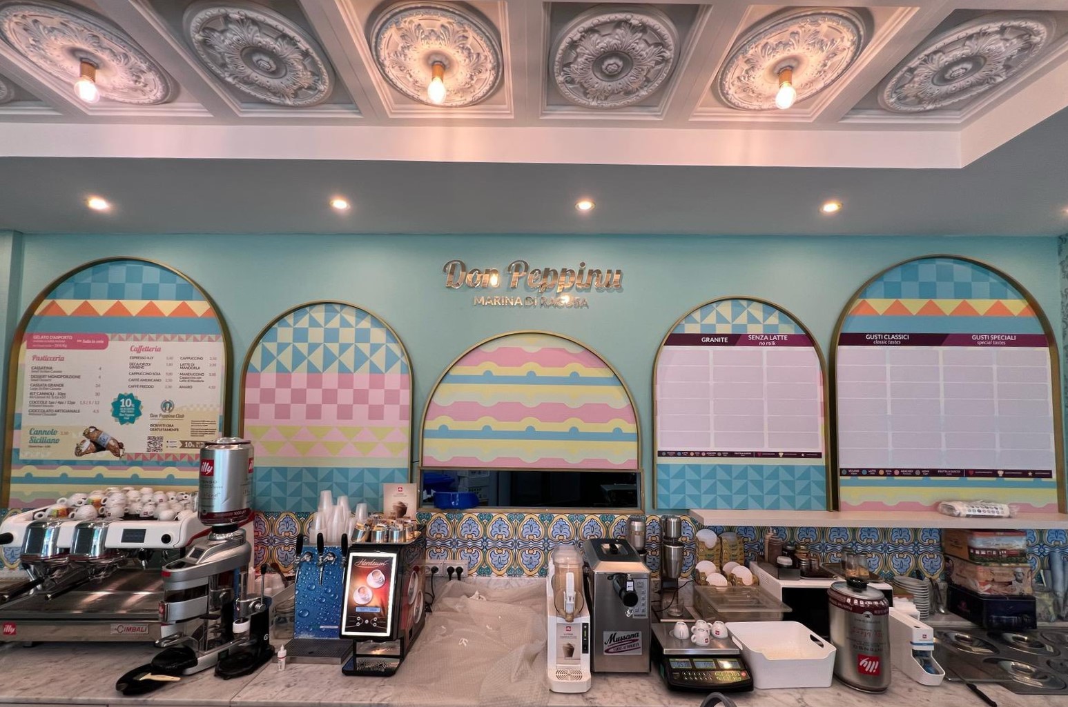 Abbiamo realizzato un allestimento completo per le gelaterie Don Peppino in diverse sedi, tra cui Taormina, Catania e Marina di Ragusa, valorizzando l’identità del brand con un design distintivo e di forte impatto visivo.