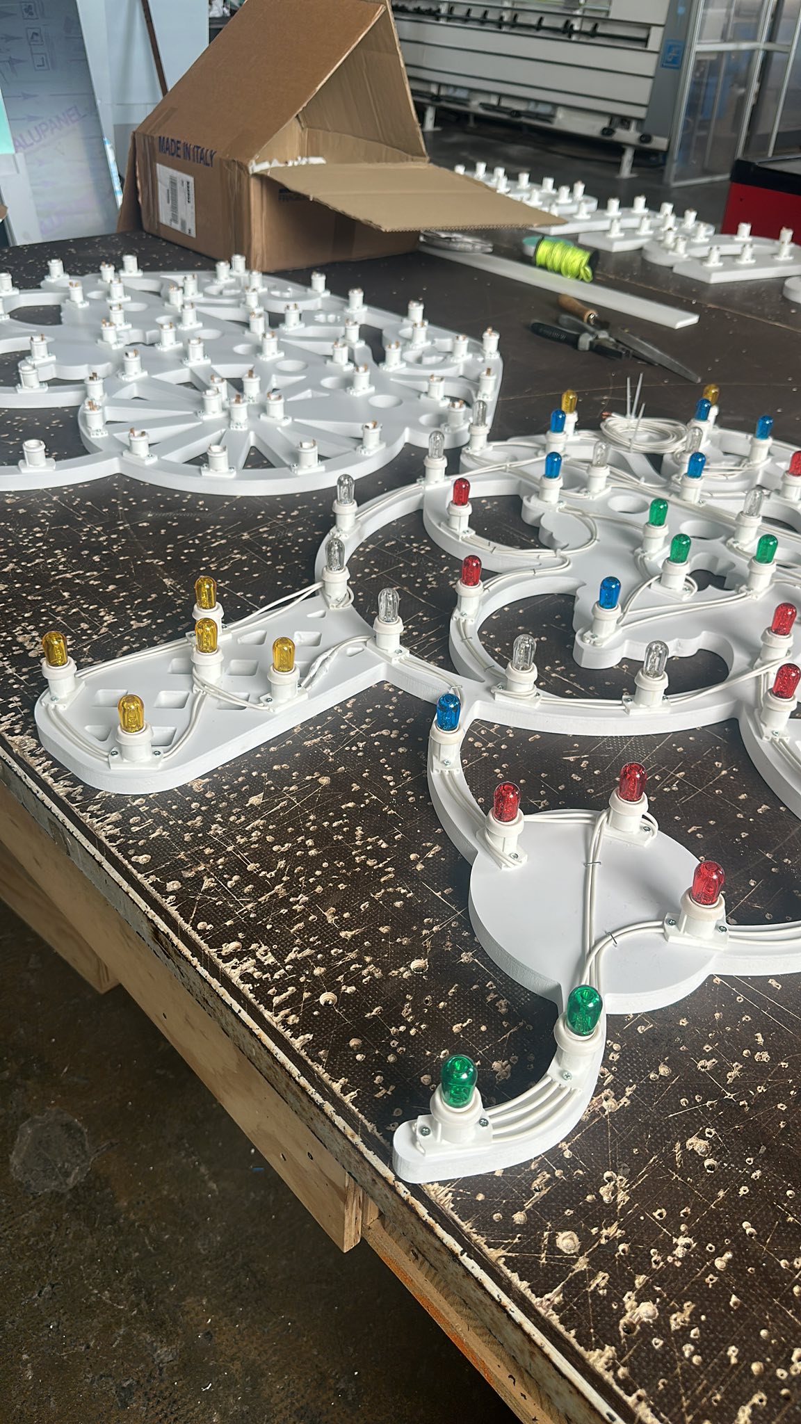 • Luminarie in stile siciliano realizzate in forex e legno con lampade a 14V.
