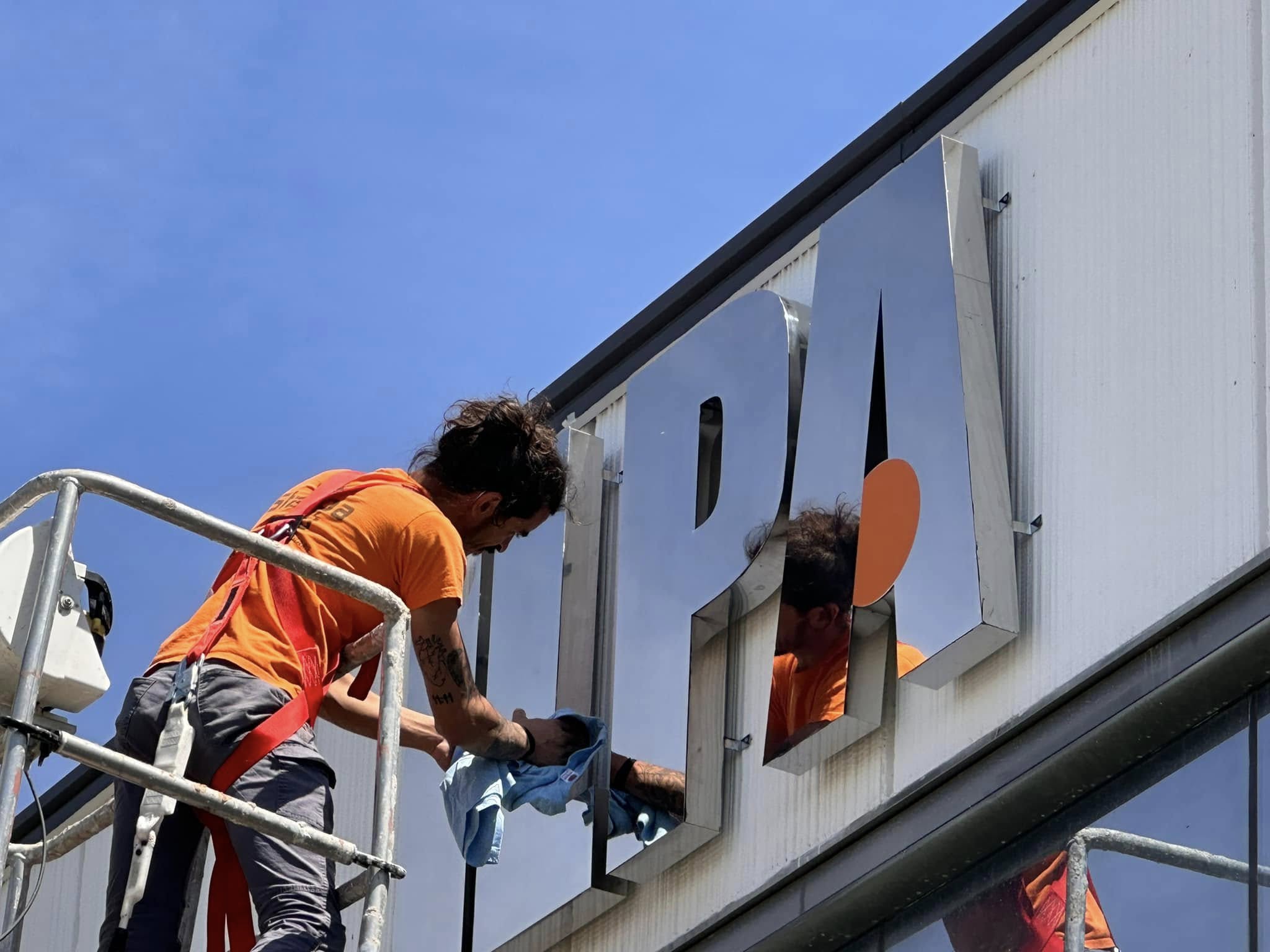 • Insegne con lettere in acciaio inox a luce indiretta per valorizzare l’immagine del brand con eleganza e visibilità.