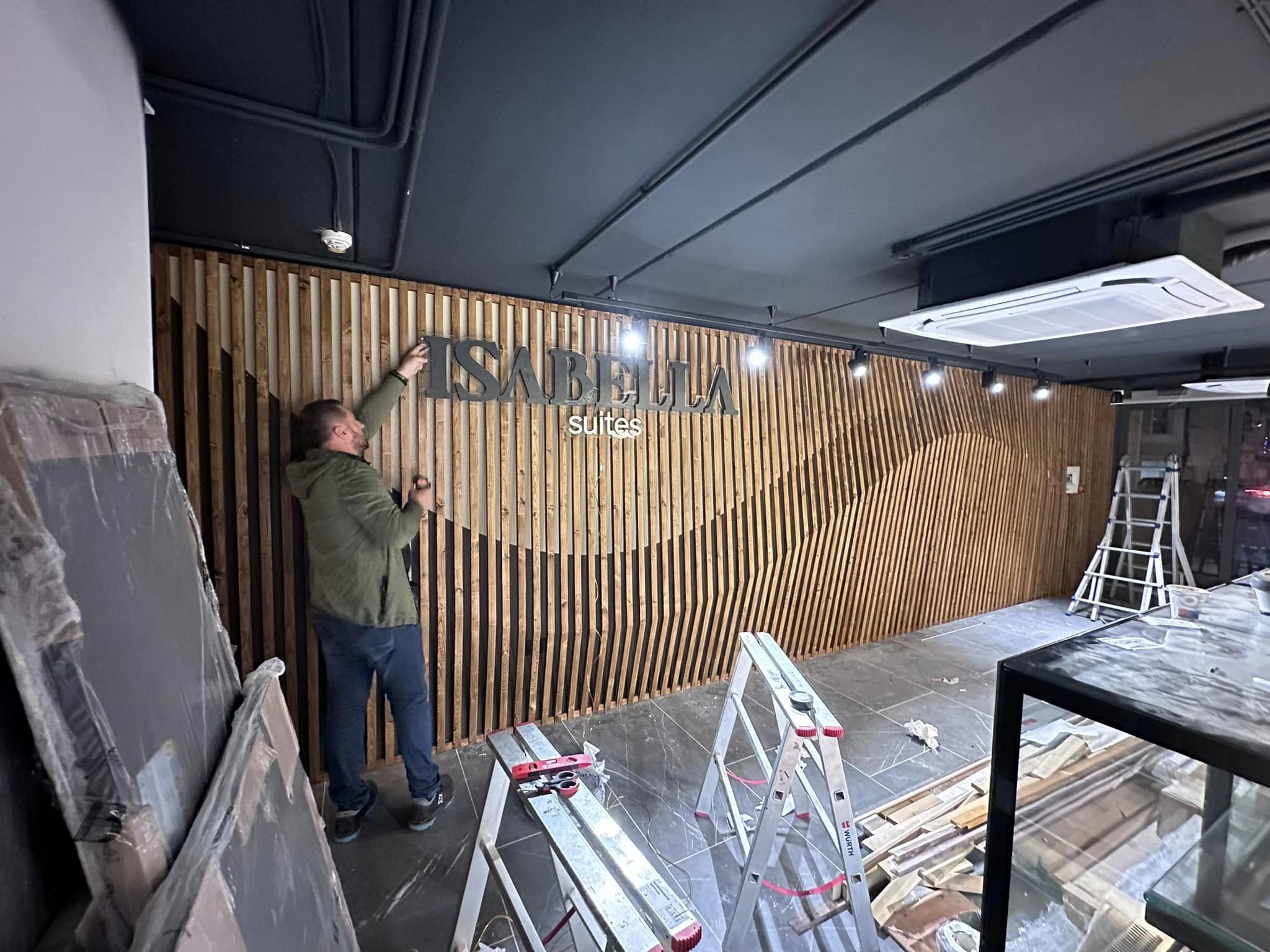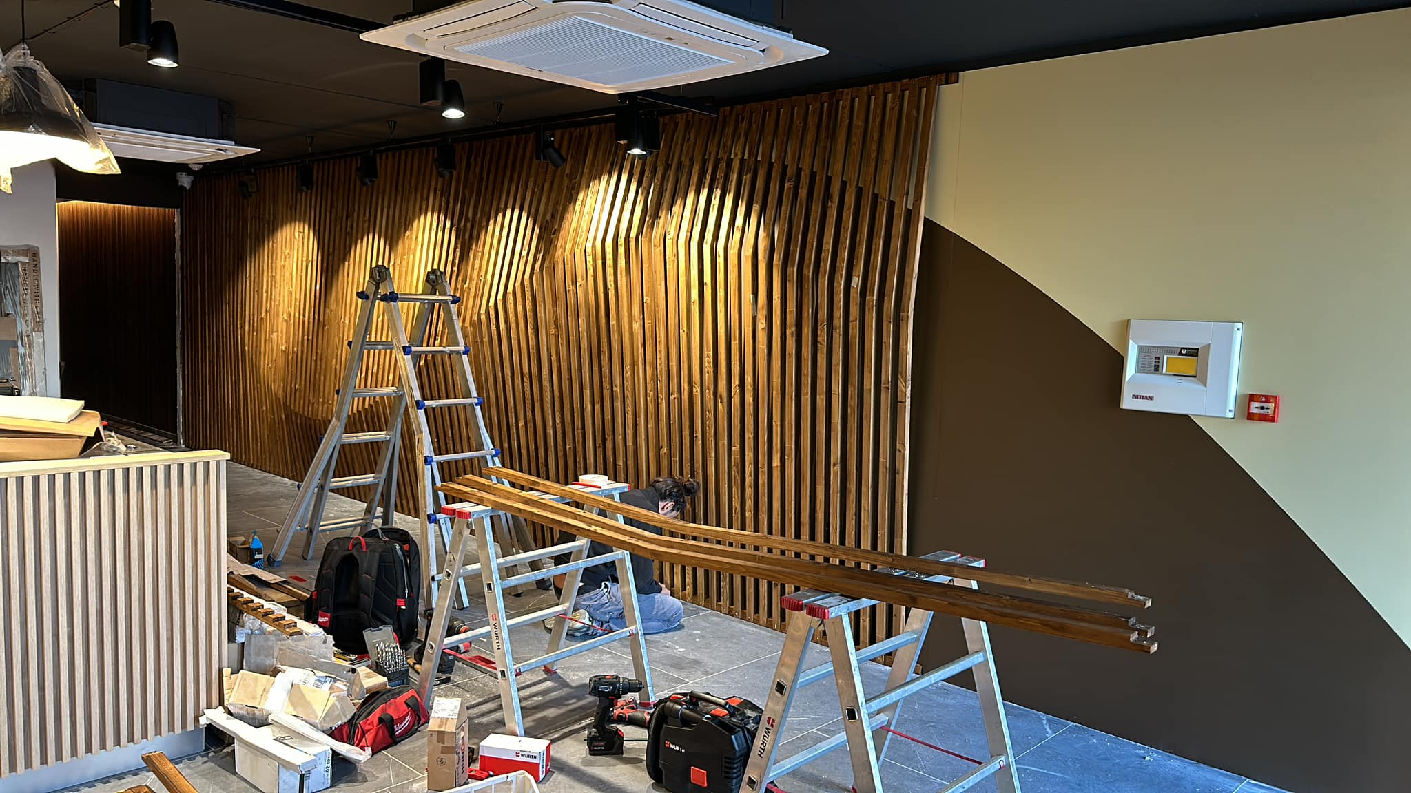 Abbiamo realizzato un intervento di rivestimento parietale artistico e su misura, caratterizzato da un’accurata lavorazione in legno massello e da un forte impatto estetico.