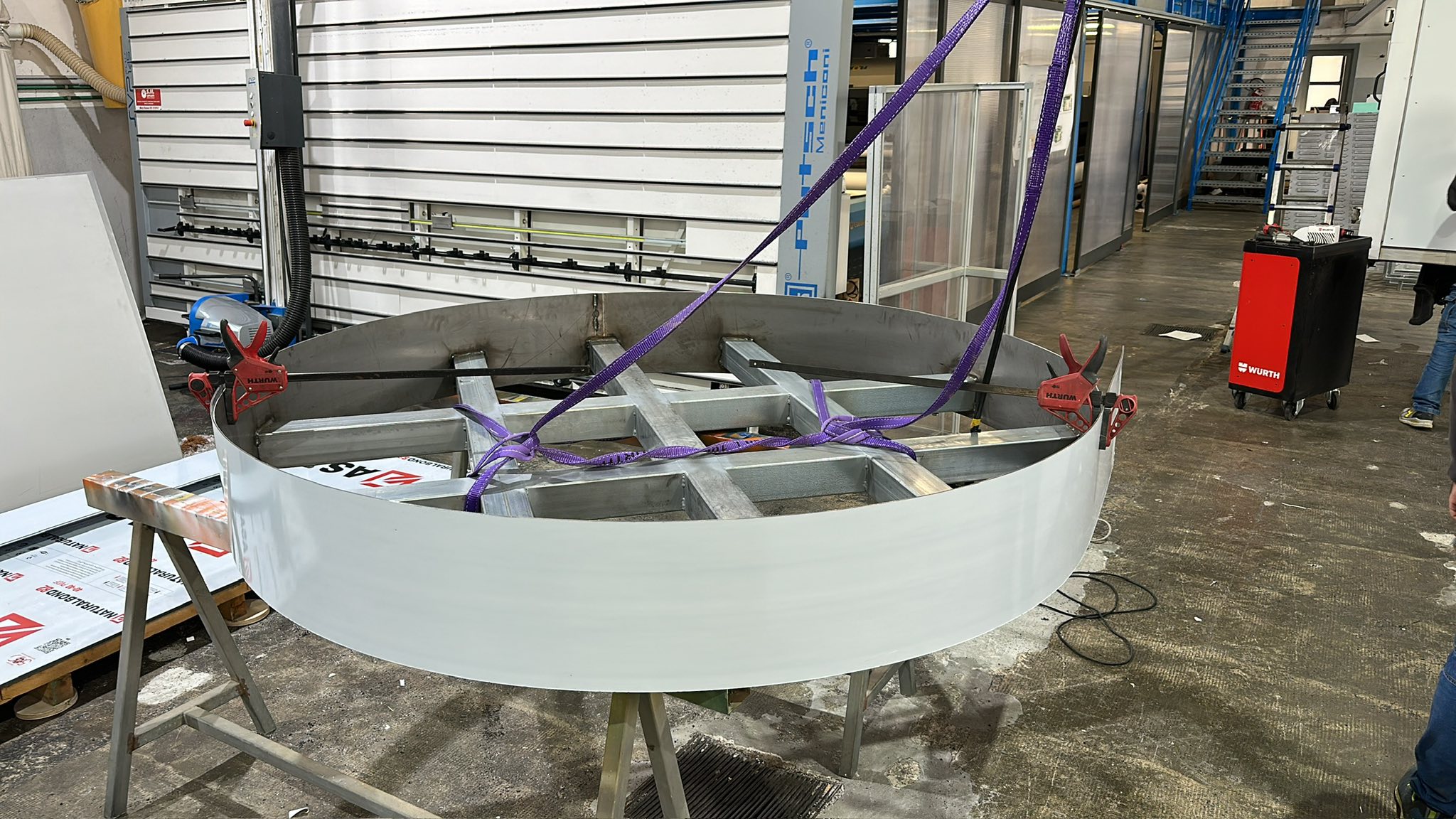 Il lavoro ha previsto la progettazione e realizzazione di un basamento strutturale in ferro zincato studiato per sostenere in totale sicurezza una statua del peso di 1.200 kg. La struttura è stata successivamente rivestita con pannelli in alluminio spazzolato e forex nero da 10 mm, garantendo solidità, eleganza e coerenza estetica con il contesto istituzionale e la pregevolezza dell’opera.