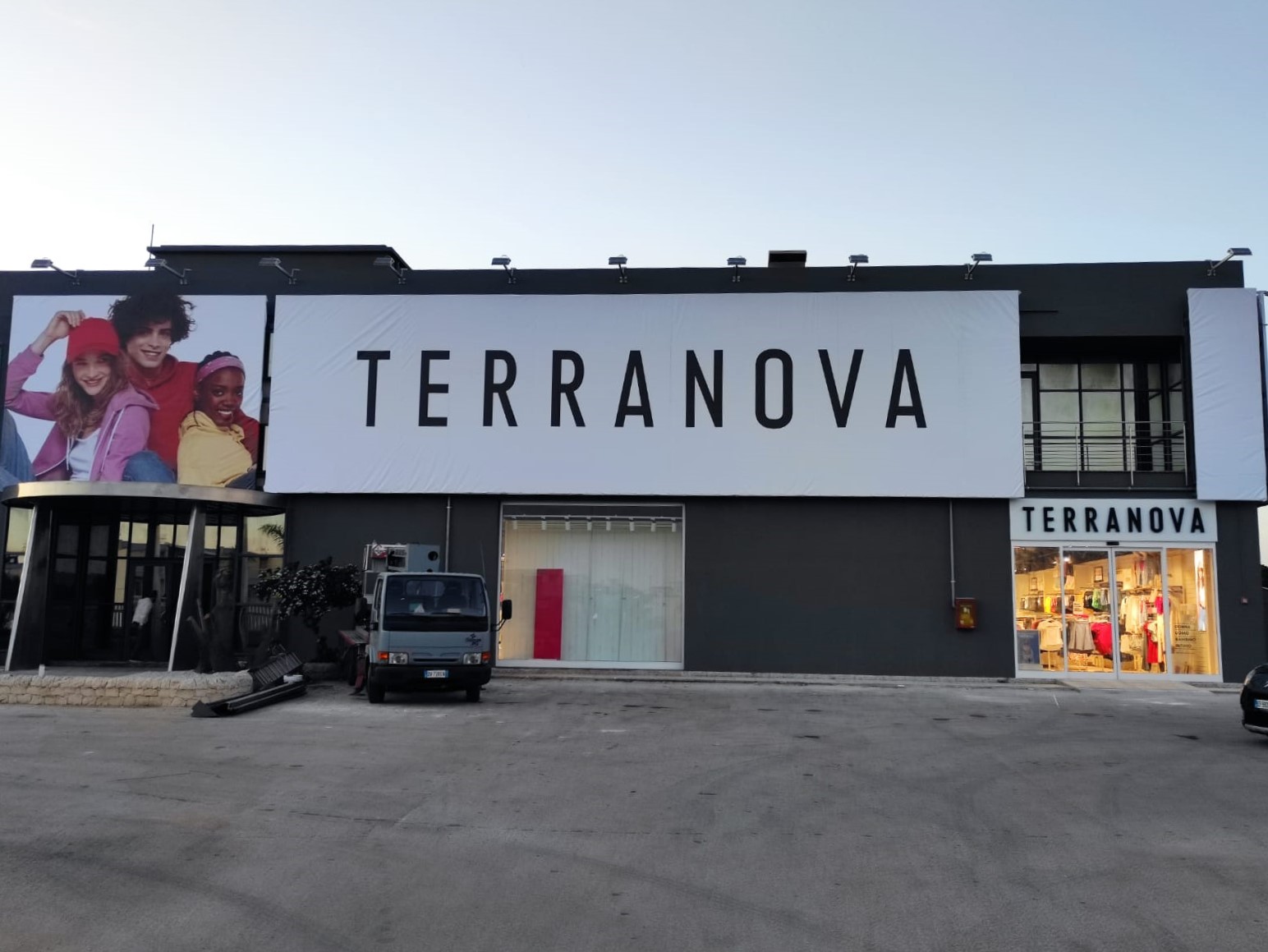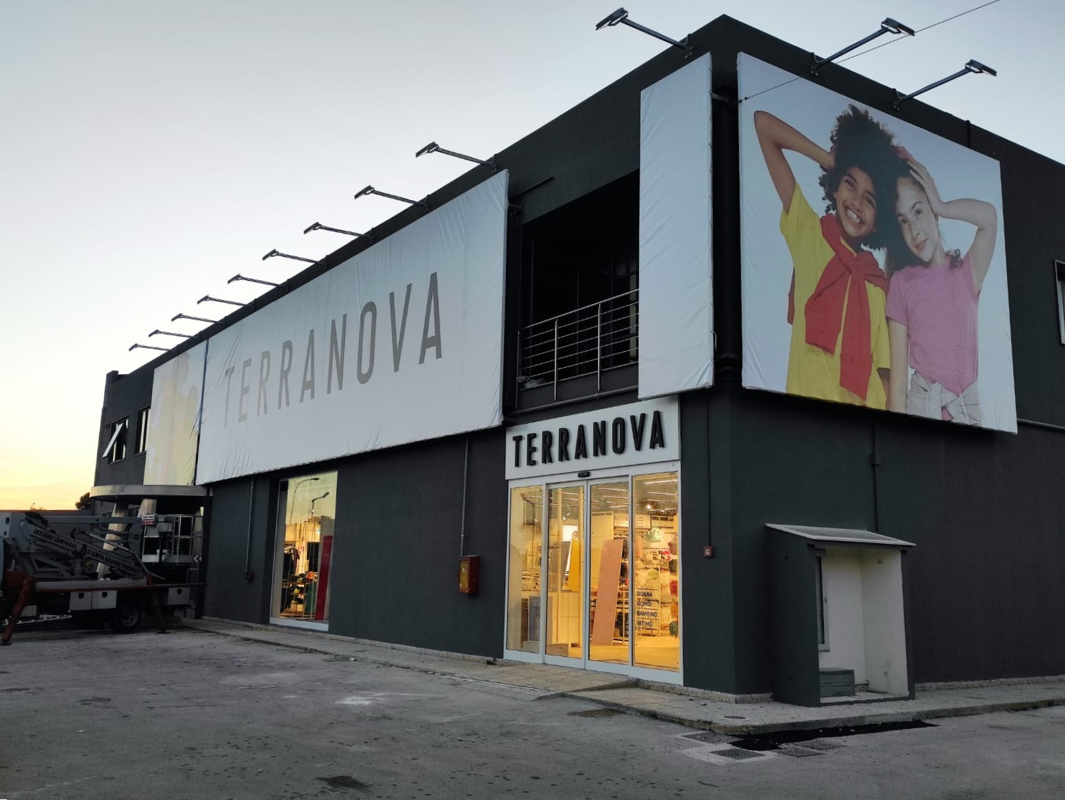 Abbiamo realizzato un intervento di allestimento esterno su larga scala per Terranova Abbigliamento a Vittoria, combinando strutture metalliche, stampa digitale e segnaletica luminosa.