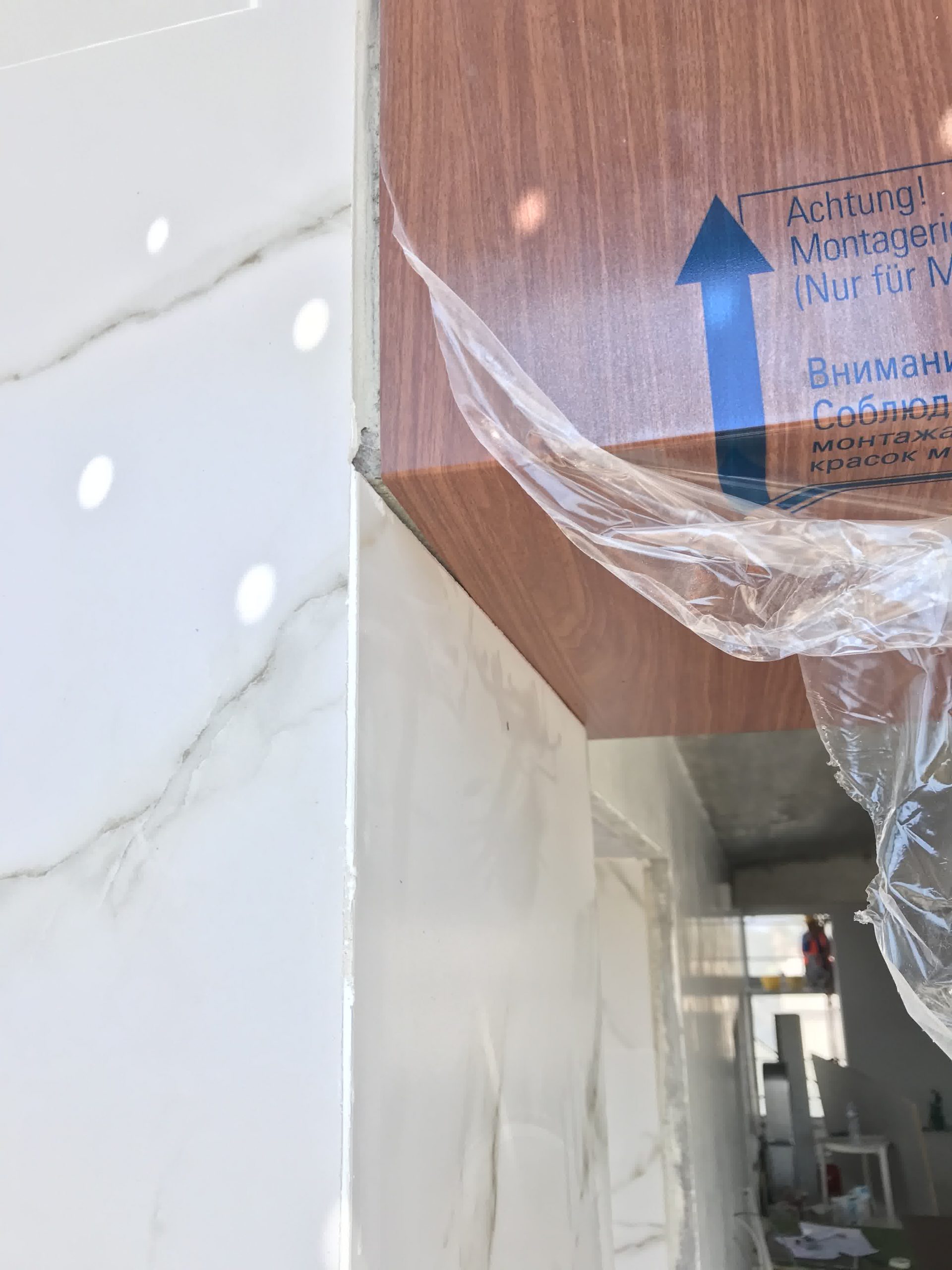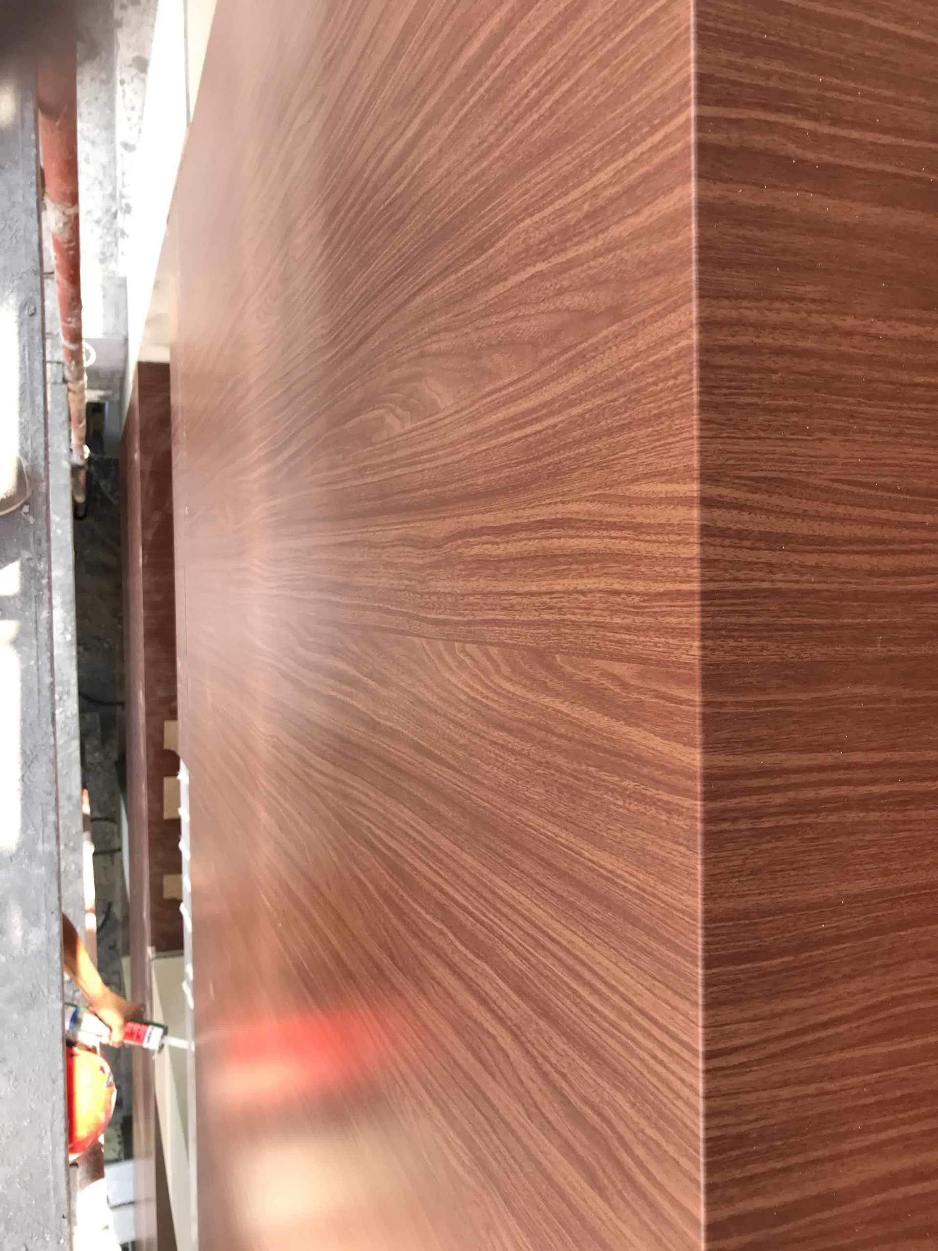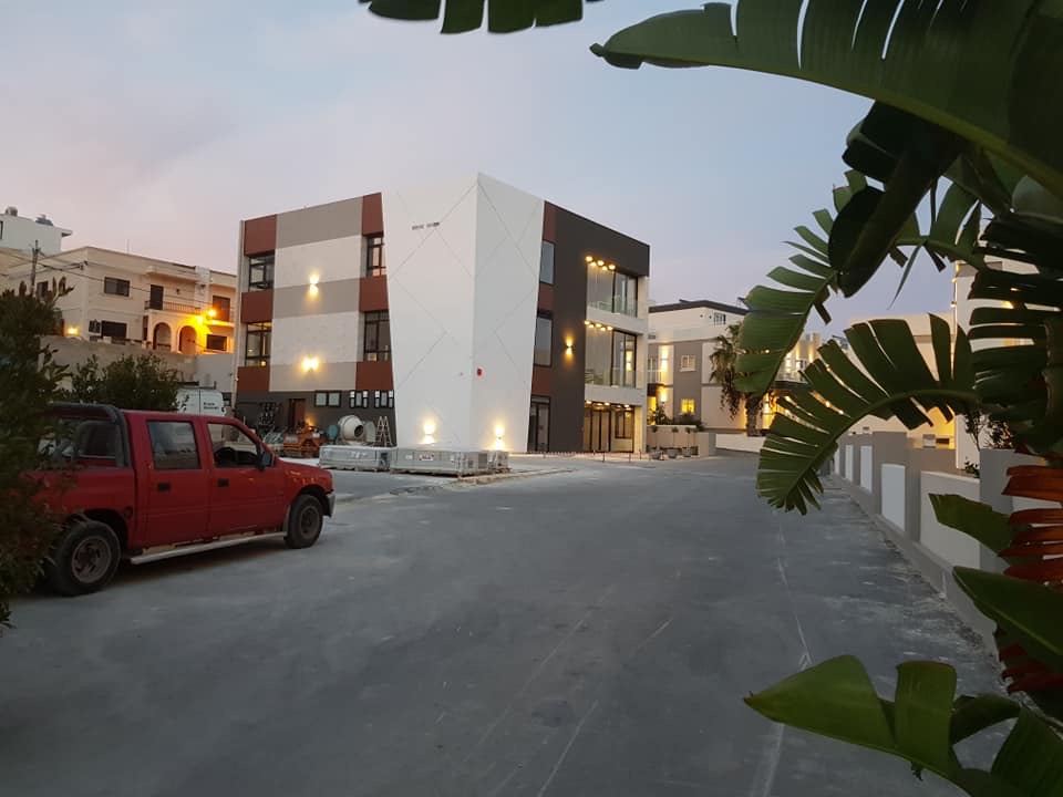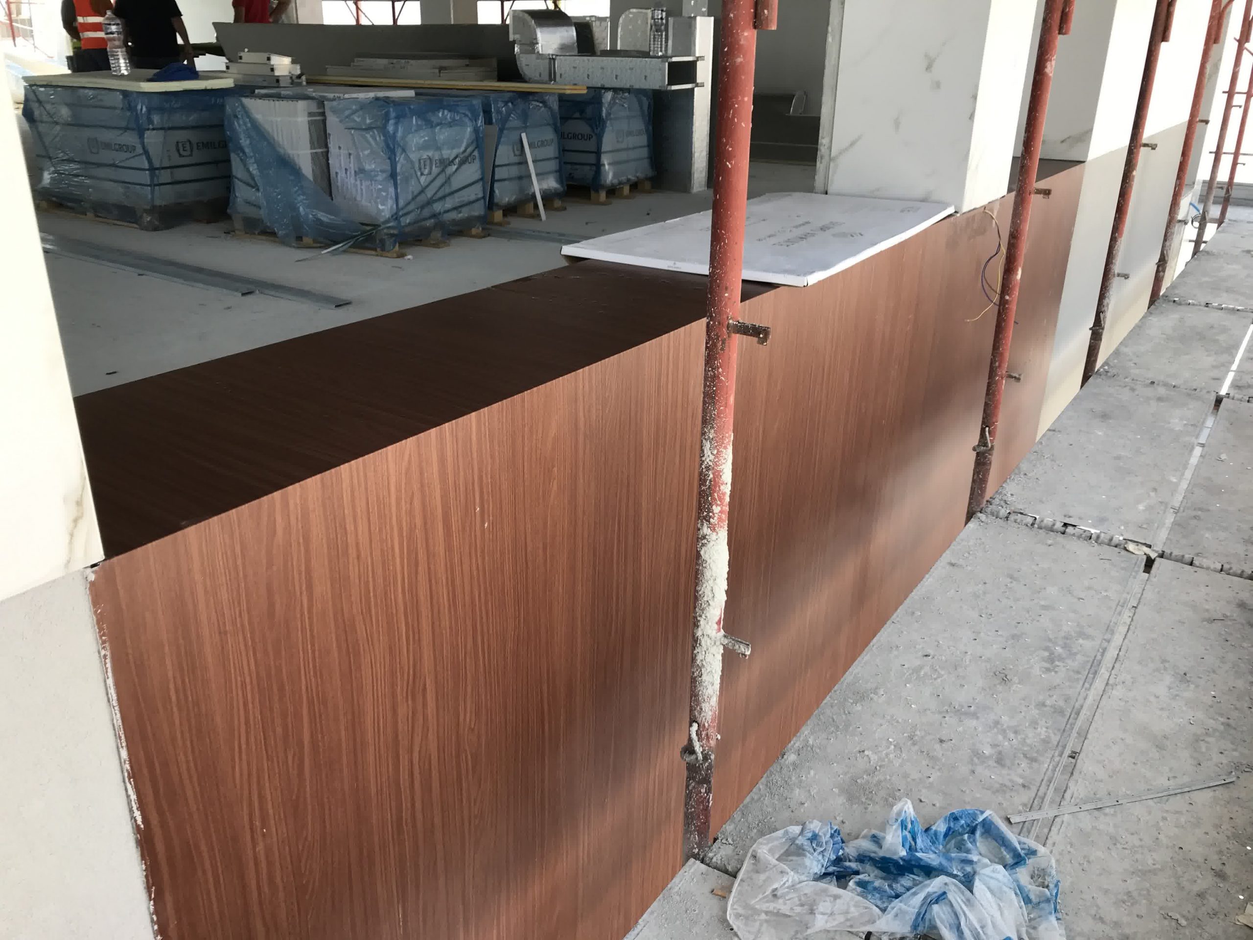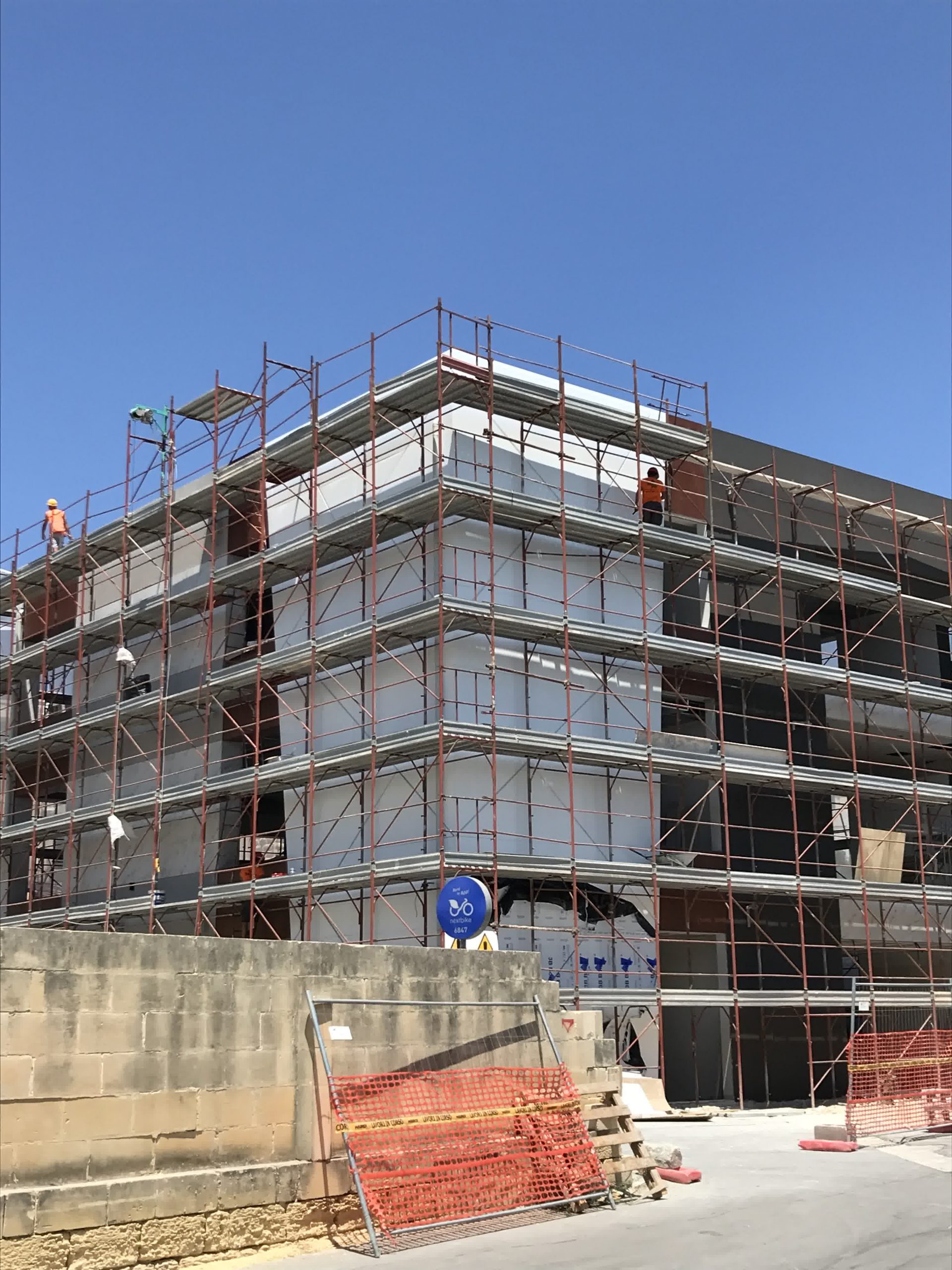 Rivestimento angolo palazzo 12×3 mt in alluminio composito bianco più elementi in effetto legno.